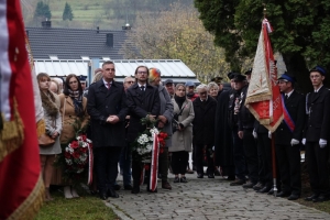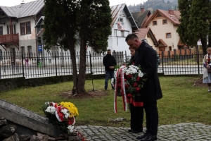 Pod pomnikiem poległych na starym placu kościelnym wiązanki kwiatów złożyli Bogdan Szewczyk Burmistrz Miasta i Gminy Szczawnica z Zastępcą i Skarbnikiem MiG Szczawnica, a także przedstawiciele: