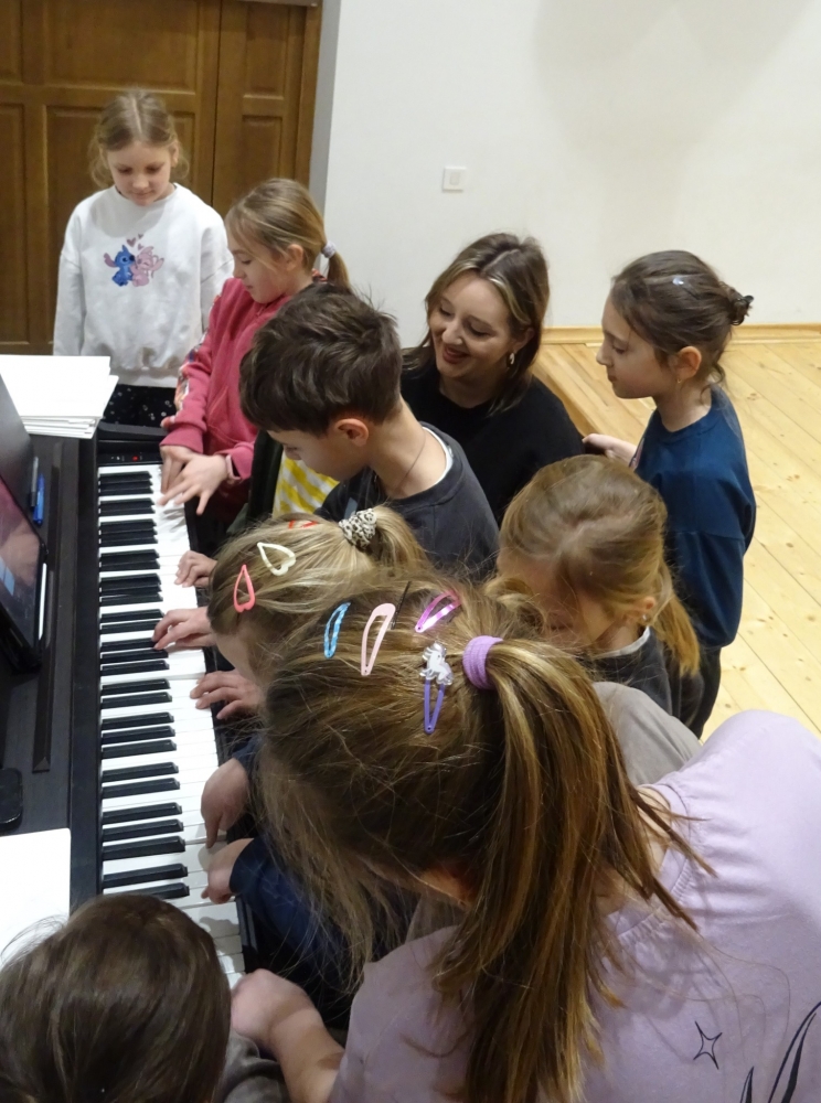 Miłośnicy muzyki rozwijali swoje talenty podczas warsztatów wokalnych prowadzonych przez Wiktorię Kozielec. W programie nie zabrakło także bajkowego kina z filmami animowanymi, gier planszowych integrujących uczestników oraz zajęć plastycznych, podczas których dzieci tworzyły papierowe origami.