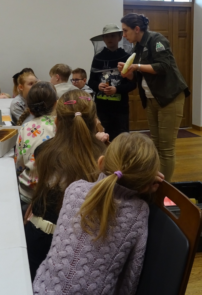 Dużym zainteresowaniem cieszyły się zajęcia przyrodnicze prowadzone przez Annę Świsterską z Zespołu Parków Krajobrazowych Województwa Małopolskiego. Uczestnicy poznawali niezwykły świat pszczół – ich zwyczaje, organizację pracy w ulu oraz znaczenie dla środowiska. Spotkania były nie tylko źródłem wiedzy, ale także okazją do budowania postawy szacunku wobec przyrody.