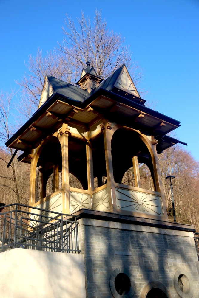 Altana muzyczna – zlokalizowana przy alejkach w dolnej części parku – odzyskuje detale swojej drewnianej konstrukcji i ozdobne elementy balustrad oraz dach pokryty blachą miedzianą.