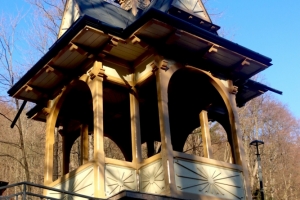 Altana widokowa – wzniesiona na początku XX w., z charakterystycznymi fryzami i kamienną podbudową – zyskała odnowione drewniane elementy i wyczyszczone, stylowe kamienne schody.