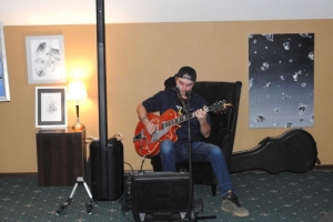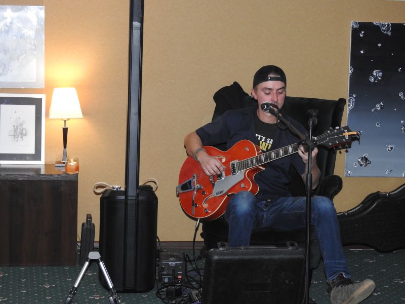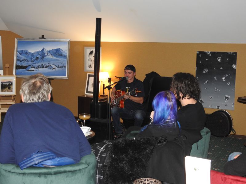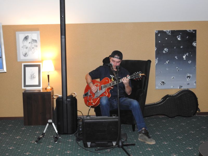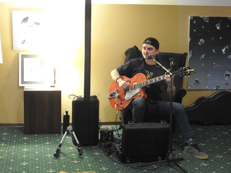 Wernisażowi listopadowej wystawy towarzyszył występ bardzo zdolnego gitarzysty i wokalisty, grającego klimatyczną muzykę blues i country, Macieja Olszewskiego - rodem ze Szczawnicy, który po latach mieszkania w Stanach Zjednoczonych wrócił do kraju.