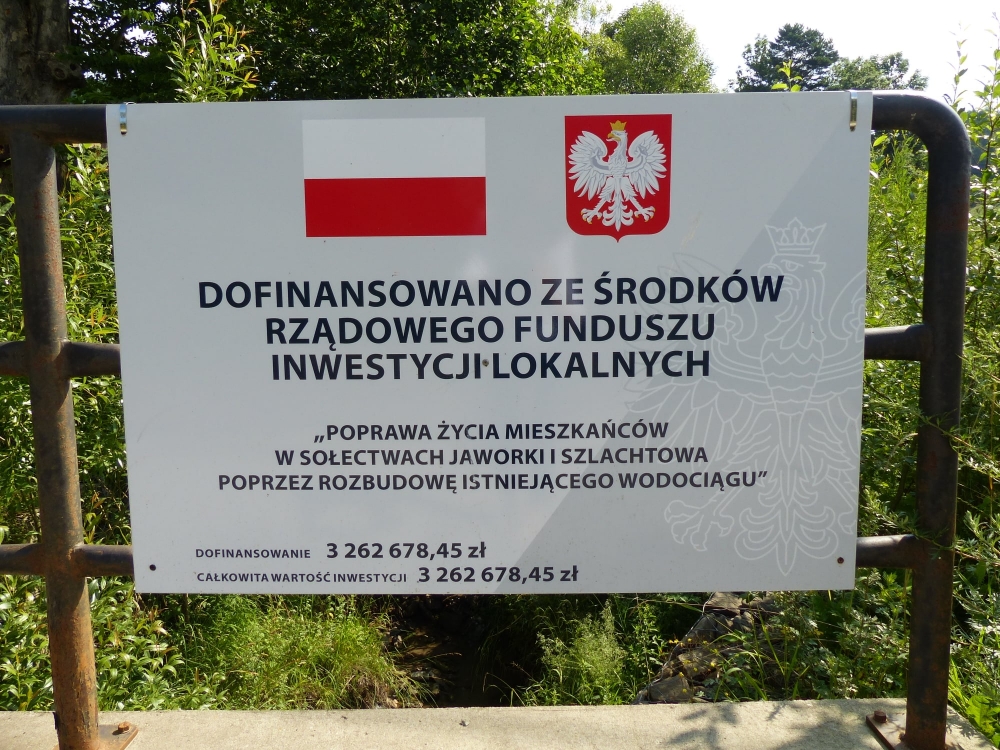 Ponadto w sołectwie Szlachtowa jest kontynuowany drugi etap rozbudowy wodociągu pod nazwą "Poprawa jakości życia mieszkańców w sołectwach Jaworki i Szlachtowa poprzez rozbudowę istniejącego wodociągu etap II".