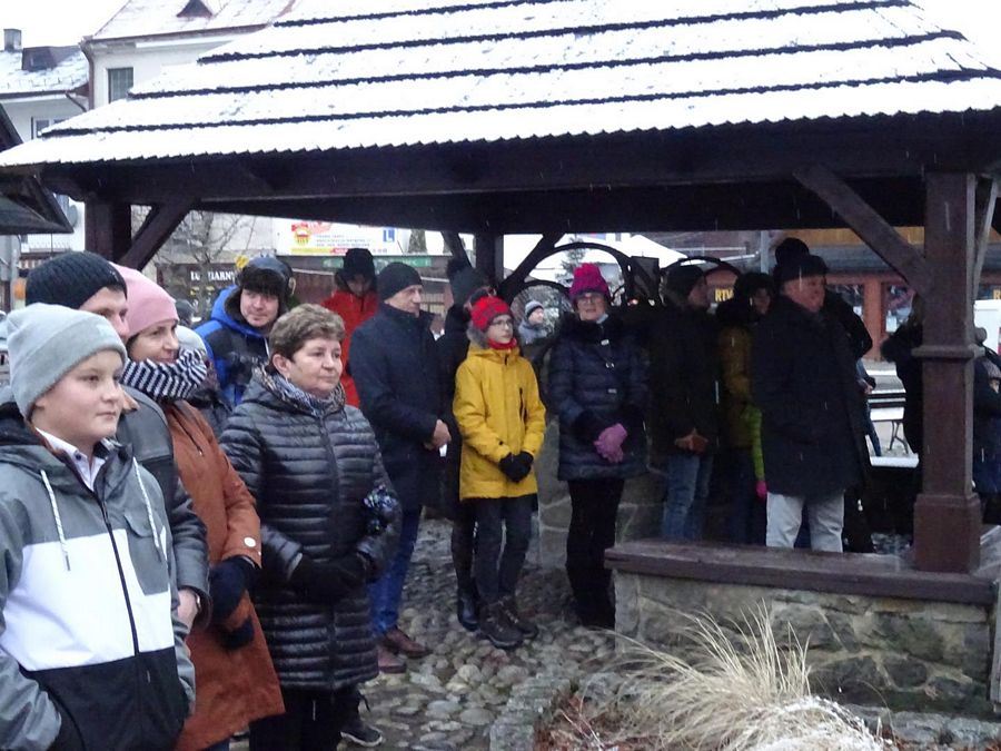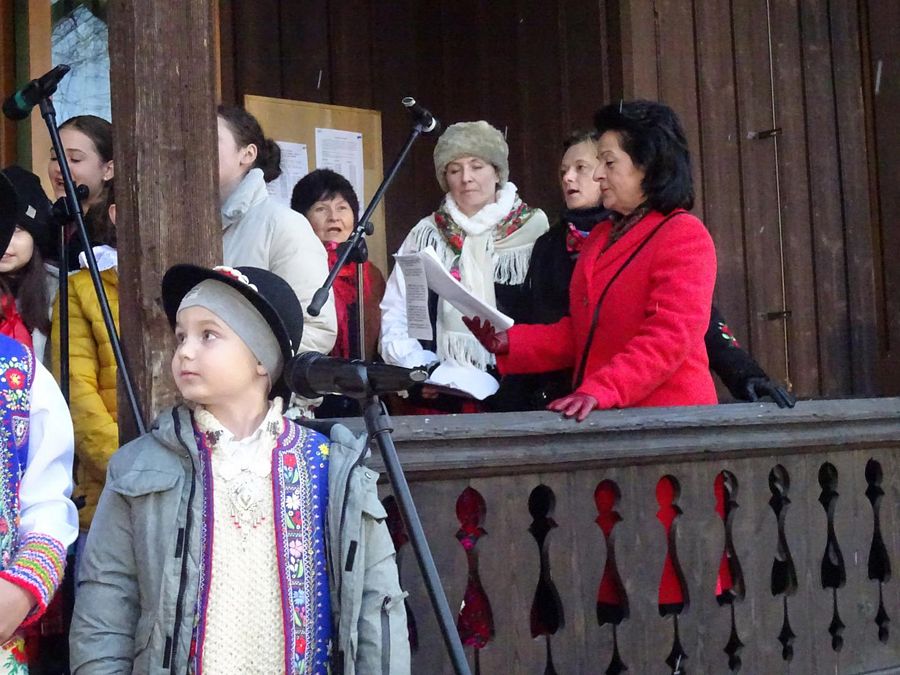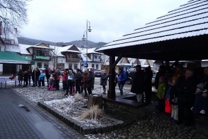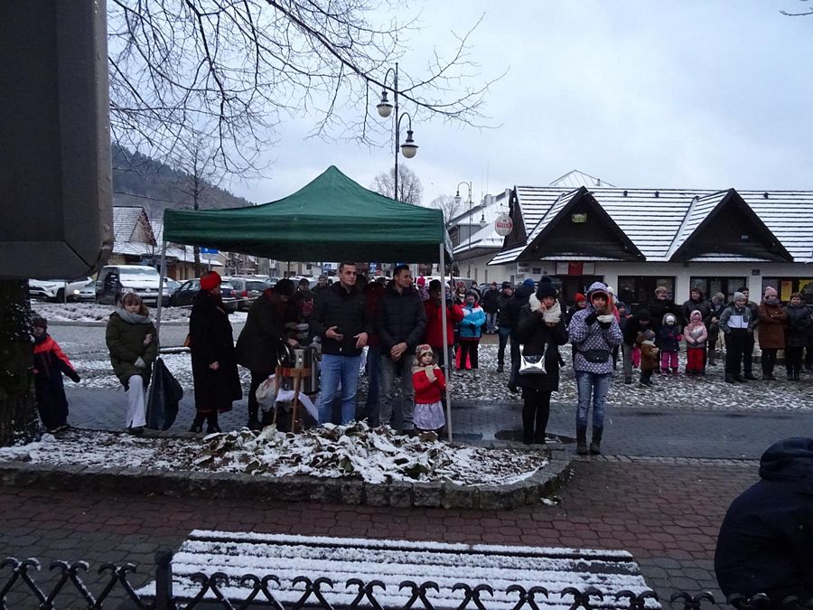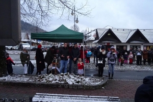 Mieszkańcy i turyści wspólnie z zespołami kolędowali pod szopką bożonarodzeniową na Rynku w Krościenku nad Dunajcem. Przy okazji mogli skosztować regionalnych przysmaków.