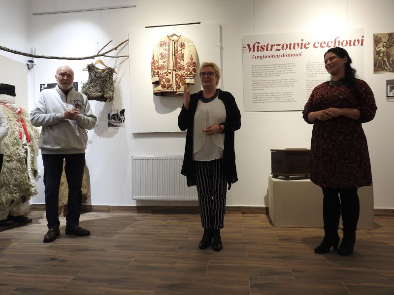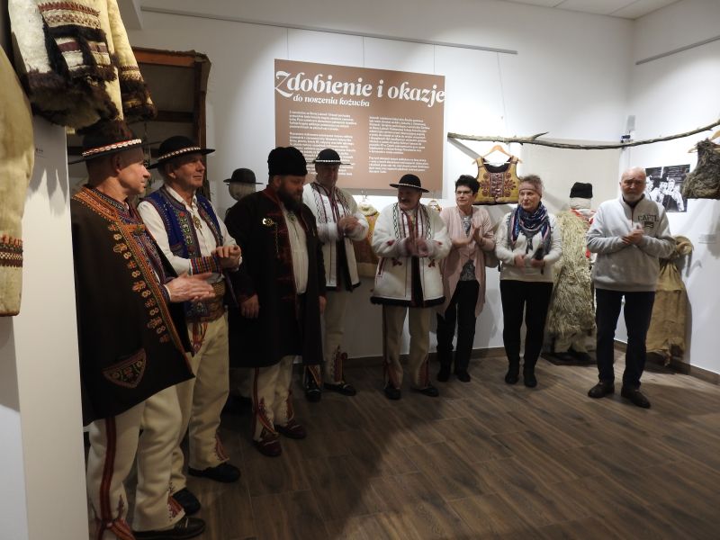 Gości przywitała dyrektor Muzeum Pienińskiego Barbara Węglarz, która pochwaliła się, iż muzeum zdążyło nabyć w 1982 roku od jednego z ostatnich Rusinów ze Szlachtowej kożuch barani, biało wyprawiony, podobny do tych eksponowanych na słowackiej wystawie. Poinformowała także, że takie kożuchy nabywali, na terenie dzisiejszej Słowacji – w Starej Lubowli, zarówno mieszkańcy Rusi Szlachtowskiej jak i górale pienińscy; kobiety i mężczyźni. Oprócz funkcji ciepłego okrycia wierzchniego podczas srogiej karpackiej zimy, kożuch był też strojem paradnym. Był integralną częścią stroju młodej pary na ceremonii zaślubin do początku XX w.