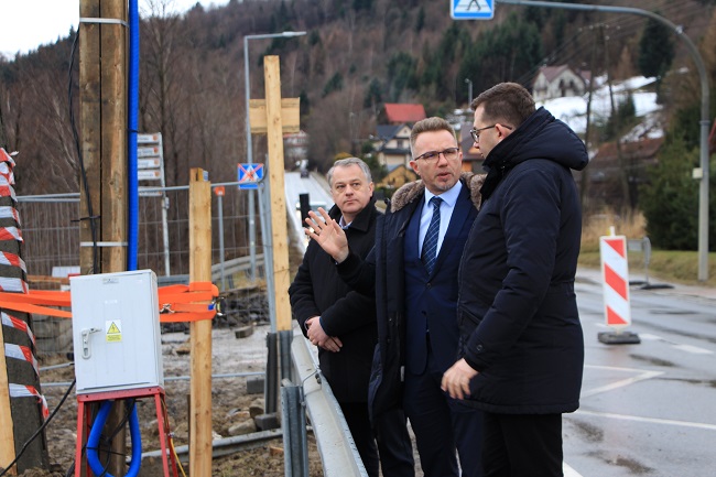 Z gospodarską wizytą do Tylmanowej przyjechał Wojewoda Małopolski Łukasz Kmita. Głównym celem spotkania wojewody z wójtem Tadeuszem Królczykiem oraz Pawłem Ceterą Kierownikiem Zespołu – Pełnomocnika Wójta ds. Inwestycji było omówienie postępów prac związanych z budową nowego mostu w osiedlu Brzegi w Tylmanowej.