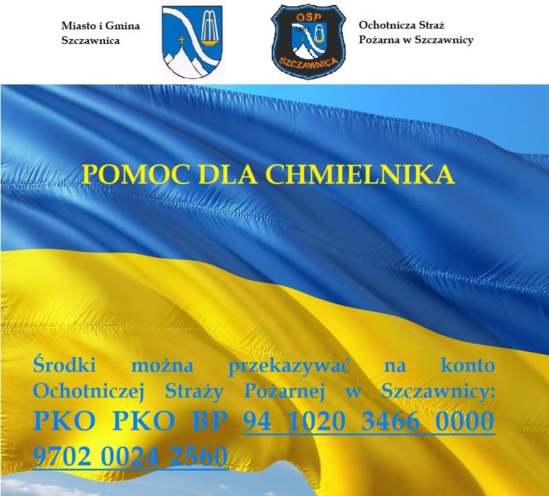 W związku z agresją Rosji na Ukrainę, Burmistrz Miasta i Gminy Szczawnica przy współpracy Ochotniczej Straży Pożarnej w Szczawnicy organizuje akcję pn.: „Pomoc dla Chmielnika”.