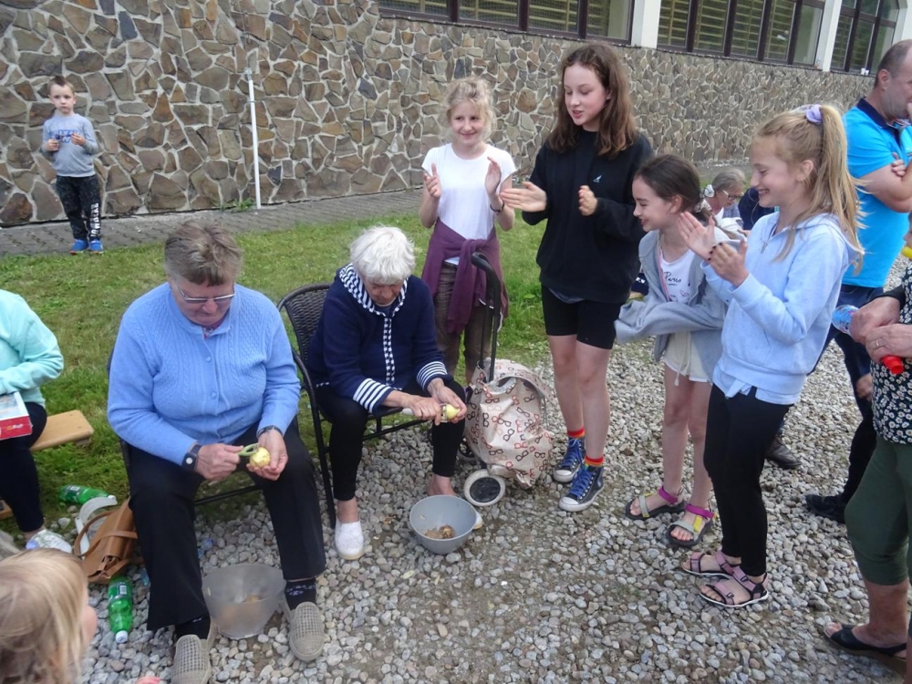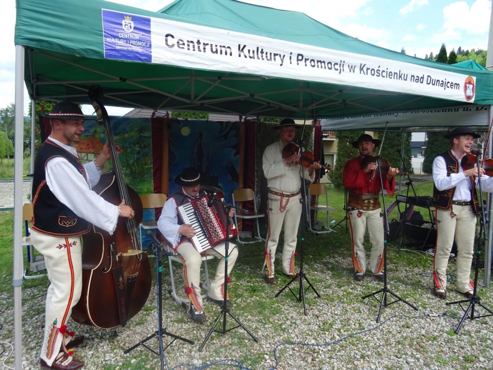 Moc dobrej energii na początek dał występ znakomitej pienińskiej kapeli góralsko – folkowej „Wyhajtani”. Jak na festyn rodzinny przystało, było też mnóstwo zabaw i konkursów zarówno dla najmłodszych, jak i całych rodzin. Szczególnie dzieciakom radość sprawiały takie konkursy sprawnościowe, jak kręcenie hula – hop i bieg z piłeczką na rakietce do ping – ponga. Rywalizowali w nich dzielnie zarówno przedszkolaki, jak i dzieci nieco starsze. Rodzinnie obierano też ziemniaki na czas oraz wspólnie tańczono w rytm dobrej i skocznej muzyki.