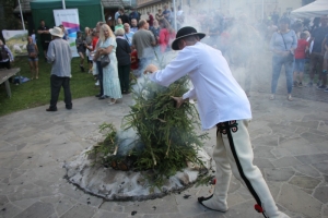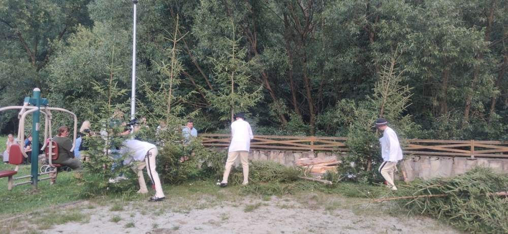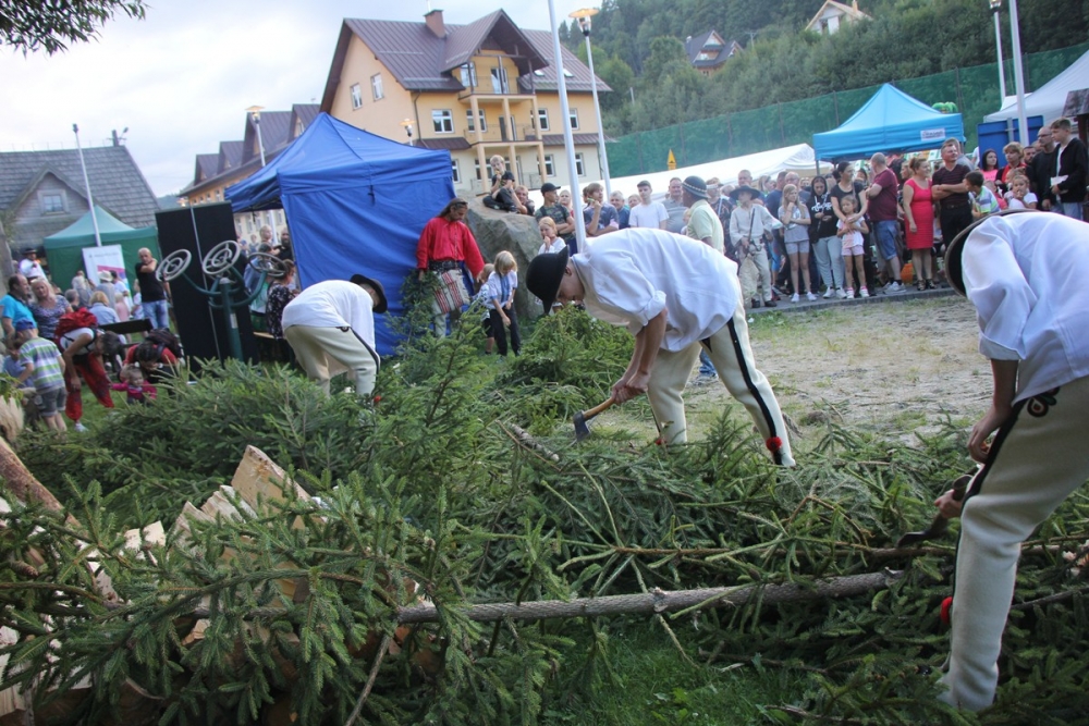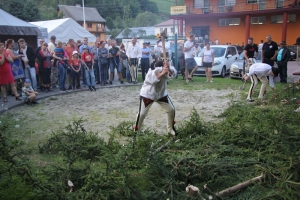 Następnie została zaprezentowana dawna wołoska metoda pozyskiwania terenów wypasowych. Rozbrzmiał dźwięk siekier. Drzewka zostały ścięte, okorowane i pocięte na mniejsze kawałki. Zapłonęła też symboliczna watra.