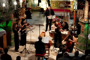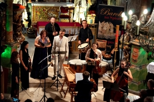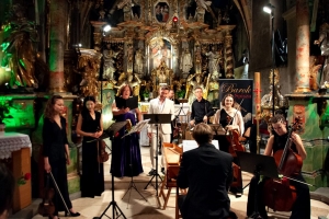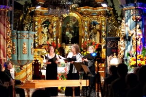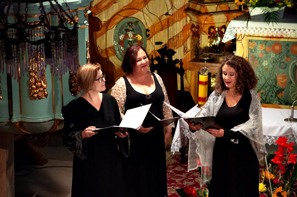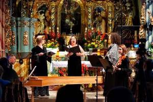 Finał festiwalu miał miejsce w odnowionym, pięknym wnętrzu kościoła św. Kwiryna w Łapszach Niżnych, gdzie zespół Donne Armoniche z towarzyszeniem klawesynisty Andrzeja Zawiszy oraz skrzypaczek Aleksandry Owczarek i Agnieszki Krawczyk przeniósł nas do siedemnastowiecznych Włoch, by w koncercie zatytułowanym „Złote jabłko i trzy damy z Ferrary” opowiedzieć o wirtuozowskich śpiewaczkach, tajemniczych koncertach na dworze d’Este w Ferrarze, dworskich fetach i ówczesnych gwiazdach. Wysłuchaliśmy wirtuozowskiej muzyki C. Monteverdiego, L. Luzzaschiego, L. Rossiego, A. Archilei przeznaczonej na głosy żeńskie w brawurowym wykonaniu członkiń zespołu: Katarzyny Wiwer, Liliany Pociechy i Adrianny Bujak-Cyran.