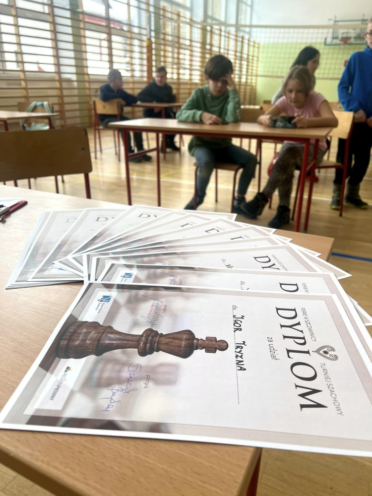 Wszyscy szachiści otrzymali pamiątkowe dyplomy, osoby zajmujące lokaty od 1-3 otrzymały Bony do relalizacji w firmie Decathlon.