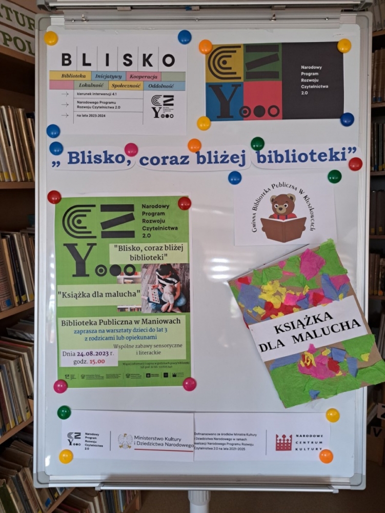 Cykl „Książka dla malucha” to propozycja dla małych czytelników w ramach Projektu BLISKO. Zadanie pn. „Blisko, coraz bliżej biblioteki” dofinansowano ze środków Ministra Kultury i Dziedzictwa Narodowego, w ramach realizacji Narodowego Programu Rozwoju Czytelnictwa 2.0. na lata 2021–2025.