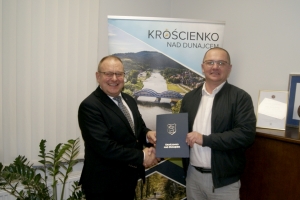 Wójt Gminy Krościenko nad Dunajcem – Stanisław Tkaczyk oraz Prezes Ochotniczej Straży Pożarnej w Krośnicy – Krzysztof Górecki podpisali umowę dotacji celowej.