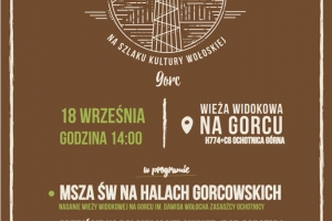 Wydarzenie rozpocznie się mszą św. na Halach Gorcowskich o godz. 14.00, po której, przy wieży widokowej, zostanie odsłonięta tablica poświęcona Dawidowi Wołochowi. Następnie na Polanach Jagiełowskich, pod Gorcem, odbędą się wspólne posiady przy góralskiej muzyce. Nie zabraknie także regionalnego poczęstunku.