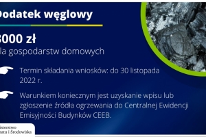 Prezydent RP Andrzej Duda podpisał ustawę o dodatku węglowym, zakładającą wypłatę 3000 zł. Wnioski o dodatek węglowy – podobnie jak w przypadku dodatku osłonowego, będzie można składać do Miejskich i Gminnych Ośrodków Pomocy Społecznej.