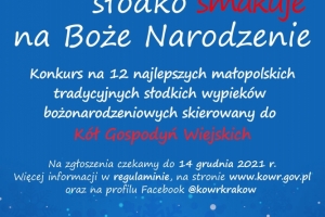 Oddział Terenowy Krajowego Ośrodka Wsparcia Rolnictwa w Krakowie serdecznie zaprasza Koła Gospodyń Wiejskich z terenu województwa małopolskiego do wzięcia udziału w konkursie „MałoPolska słodko smakuje na Boże Narodzenie”.