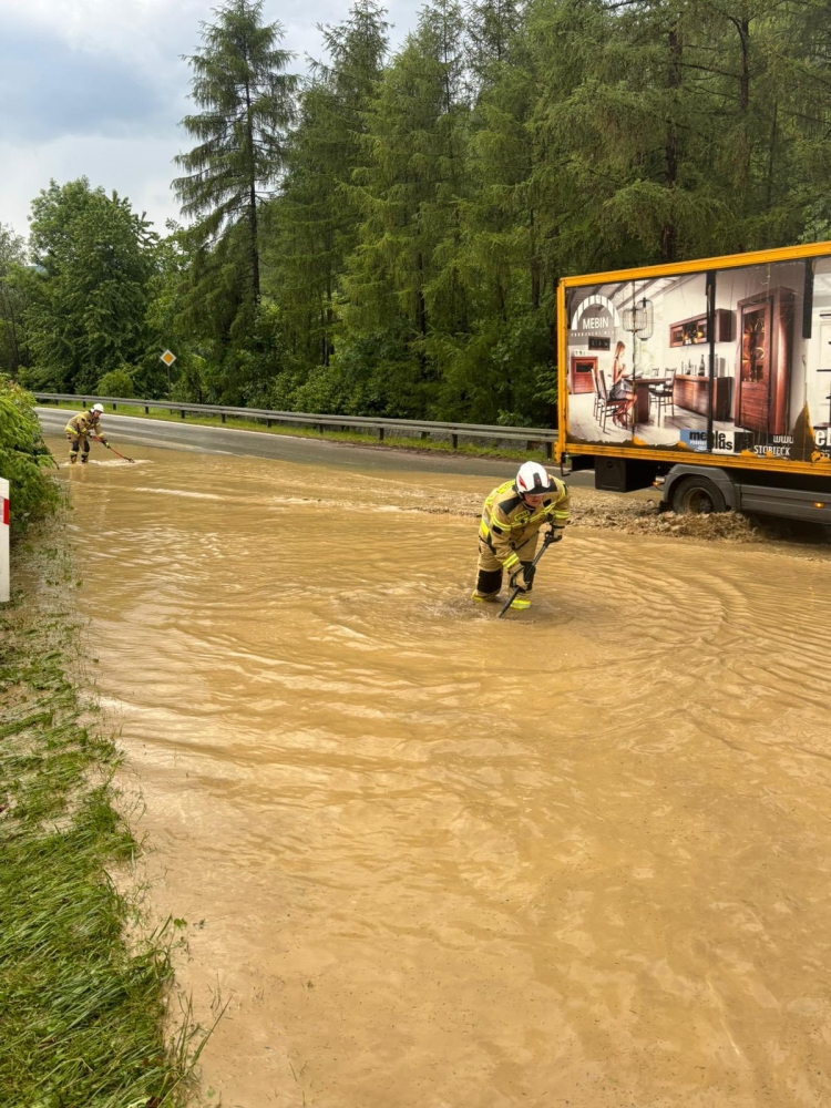 Nawałnice w Gorcach. Zalane drogi w Tylmanowej i Ochotnicy