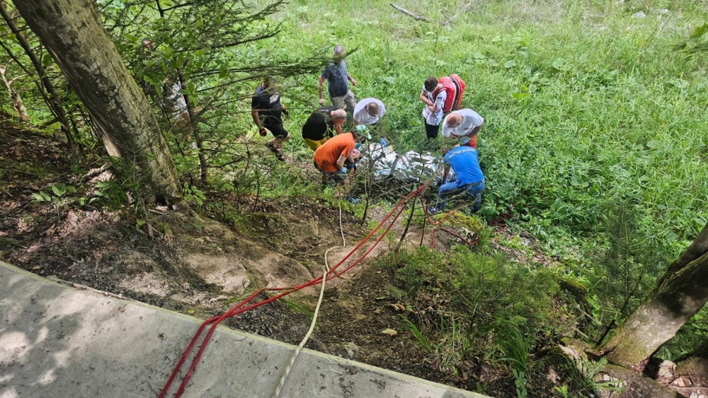 Słowaccy ratownicy wyciągnęli poszkodowanego mężczyznę, który upadek z 6-metrowej skarpy przypłacił urazem głowy - przetransportowali go do Czerwonego Klasztoru a następnie do szpitala.