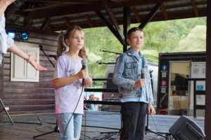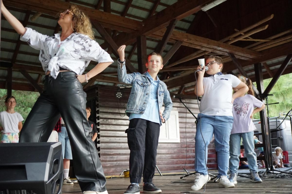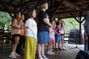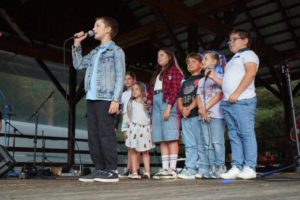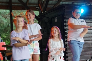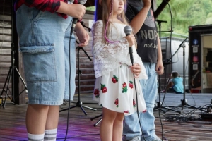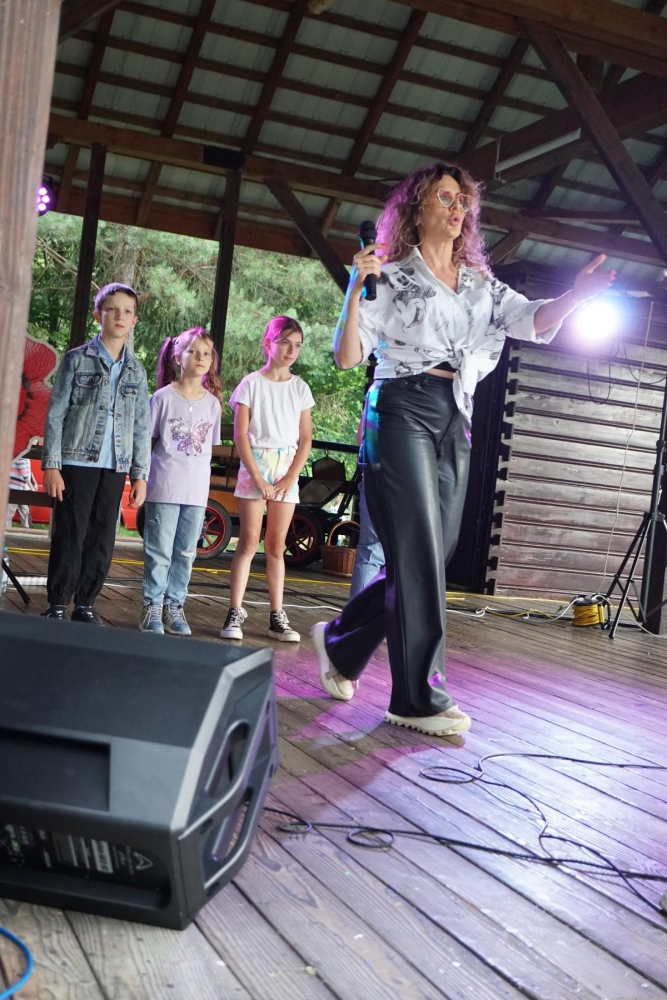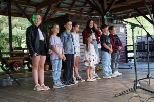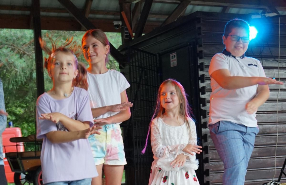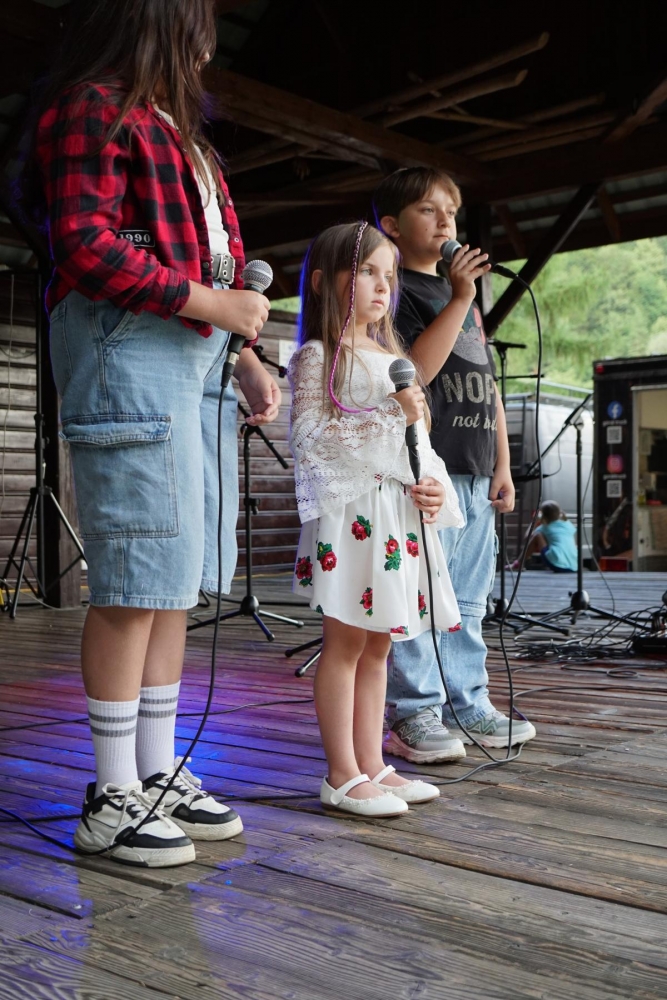 Następnie scenę przejęły dzieci ze Sromowiec Niżnych w koncercie „Nasze talenty” – efekcie warsztatów wokalnych prowadzonych przez Beatę „Beti” Buszkę. Usłyszeliśmy m.in. eurowizyjny przebój Espresso Macchiato oraz utwory z repertuaru Sanah, Sylwii Grzeszczak i Bruno Marsa. Występ wzruszył publiczność i udowodnił, jak wielkie talenty drzemią w najmłodszych mieszkańcach naszej gminy. To była nie tylko lekcja śpiewu, ale również cenna nauka przełamywania tremy i odwagi scenicznej.
