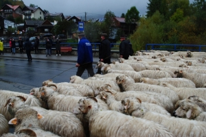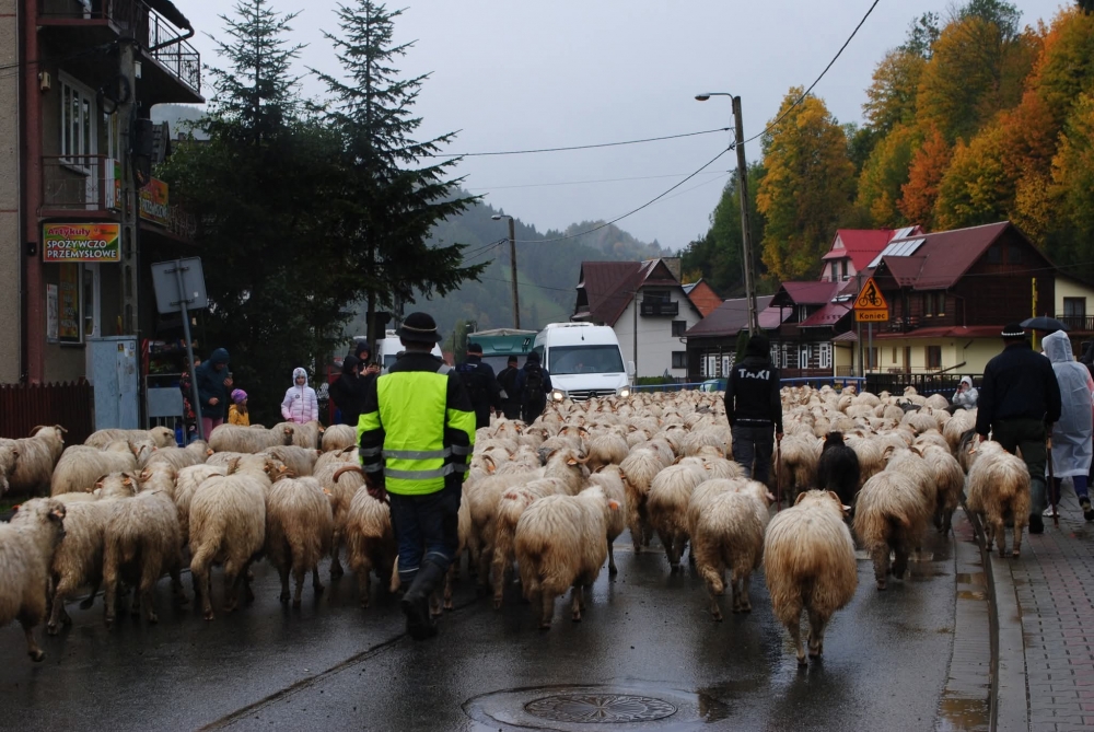 Zmierzający do Nowego Targu baca Józef Klimowski przeszedł dziś ze swoim stadem owiec przez Szczawnicę, wywołując poruszenie wśród przechodniów i turystów.