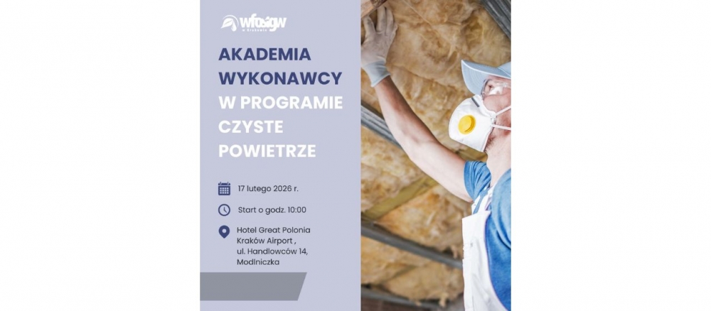 Akademia adresowana jest do osób realizujących inwestycje w programie Czyste Powietrze. Pierwsze spotkanie odbędzie się 17 lutego br. w Hotelu Great Polonia Kraków Airport w Modlniczce w godzinach 10.00–13.30.
