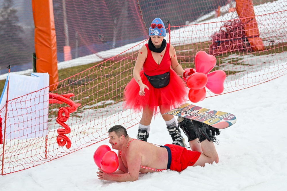 Nietypowo i bardzo widowiskowo uczczono Walentynki na stoku narciarskim Polana Sosny w Niedzicy. W piątek odbyło się tam wydarzenie pod hasłem „morsowanie przez zjeżdżanie”, zorganizowane przez lokalny klub Morsy Pieniny. Uczestnicy – zamiast tradycyjnych kombinezonów narciarskich – zjeżdżali trasą narciarską w strojach kąpielowych, traktując to jako formę hartowania organizmu przed klasycznym morsowaniem.