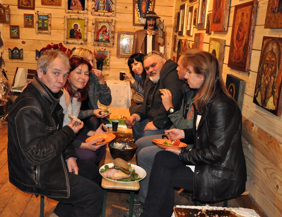 Każdy mógł podzielić się swoimi wspomnieniami związanymi z „ Doliną Grajcarka”. Gospodyni galerii Joanna Dziubińska wspólnie z Anną Madeją przygotowały dla zebranych poczęstunek, na którym nie zabrakło słynnego „żurku Madejowej”.