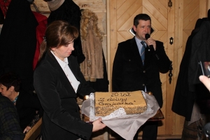 Była także okazja do uczczenia jubileuszu 20.lecia Miesięcznika Wiadomości Szczawnickich „Z doliny Grajcarka”, który rozpoczął swą działalność we wrześniu 1991r., a od stycznia 1992r. ukazuje się regularnie. Na ręce jej redaktor naczelnej Aliny Lelito spłynęły gratulacje i podziękowania ze strony władz oraz zaprzyjaźnionych ludzi kultury. Redaktorów - założycieli gazety i jej trudne, ale radosne początki przybliżył pomysłodawca pisma i jego pierwszy redaktor naczelny Stanisław Zachwieja. O przyjacielskiej atmosferze pracy „braci dziennikarskiej” na przestrzeni dwudziestolecia opowiedziała, obecna na łamach gazety od pierwszego jej numeru, Jolanta Jarocka - Bieniek. Alina Lelito dziękując współpracownikom miesięcznika za wkład pracy włożony w tworzenie lokalnej gazety w ciągu 20.lecia jej istnienia; za ciekawe teksty, twórcze opinie i wszechstronne interpretacje; za rzetelność, punktualność, niezawodność, bezinteresowność i zaangażowanie odczytała także okolicznościowe adresy przesłane od tych, którzy tego dnia na uroczystość dotrzeć nie mogli – pp. Wiesławy i Ludwika Freyów oraz Elżbiety Trojnarskiej, dyrektor Zespołu Szkół Zawodowych i Placówek w Krościenku nad Dunajcem. Pani dyrektor zadbała o „potrzeby ciała” uczestników opłatka i ufundowała wspaniały jubileuszowy tort. Spotkanie zakończyło się słodką konsumpcją i wspólnym toastem za pomyślność i dalszy rozwój gazety.