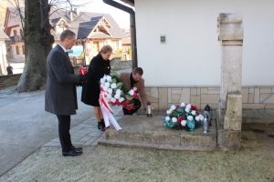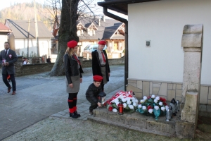 Kolejnym punktem uroczystości było złożenie wiązanek na grobie prof. Józefa Wiśmierskiego oraz pod tablicami upamiętniającymi bł. ks. Józefa Stanka i Wojciecha Halczyna. Był to wyraz pamięci i szacunku wobec osób zasłużonych dla naszej Ojczyzny.