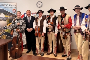 W przedświątecznej, pełnej serdeczności atmosferze Wójta Gminy Krościenko nad Dunajcem odwiedzili przedstawiciele Kapeli Śmiałki oraz Zespołu Pieśni i Tańca Pieniny. Artyści złożyli śpiewające życzenia noworoczne, wprowadzając do urzędu klimat tradycji, kolędy i góralskiej radości. Spotkanie było okazją do rozmów, wspólnych zdjęć oraz podkreślenia znaczenia lokalnej kultury i folkloru w życiu gminy.