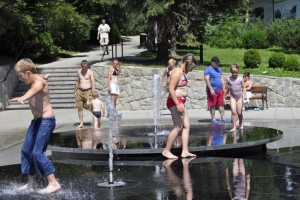 W Nowym Targu, Szczawnicy czy Rabce-Zdroju, w upał dzieci najchętniej szukają ochłody w fontannach.